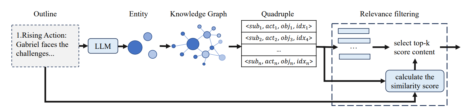 - and provides contextual content for outline planning and story writing to reduce content conflicts in long story texts.