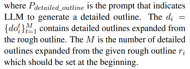 - every rough outline is expanded into 3 detailed outlines which means the M mentioned in Section 4.1 is set to 3.