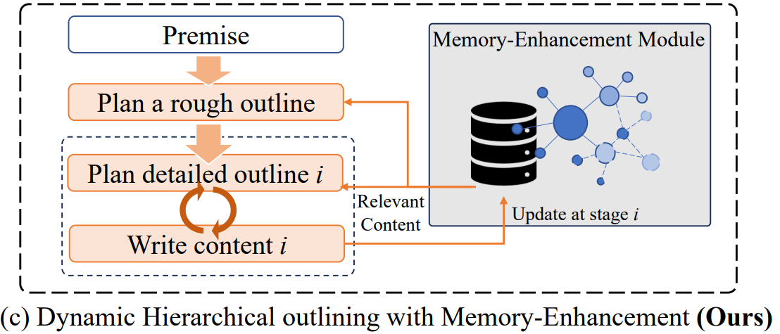 - Specifically, we propose a dynamic hierarchical outline (DHO) mechanism for long-form story generation, based on the plan-write framework and novel-writing theory.